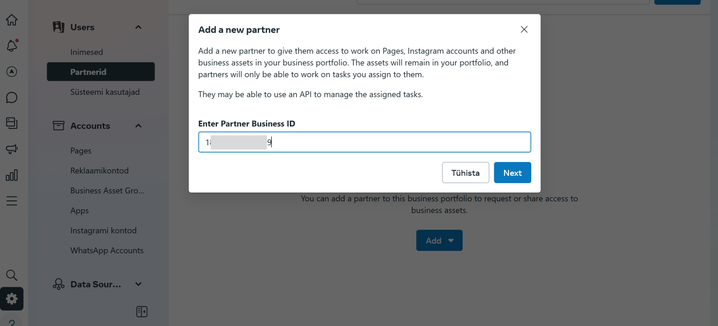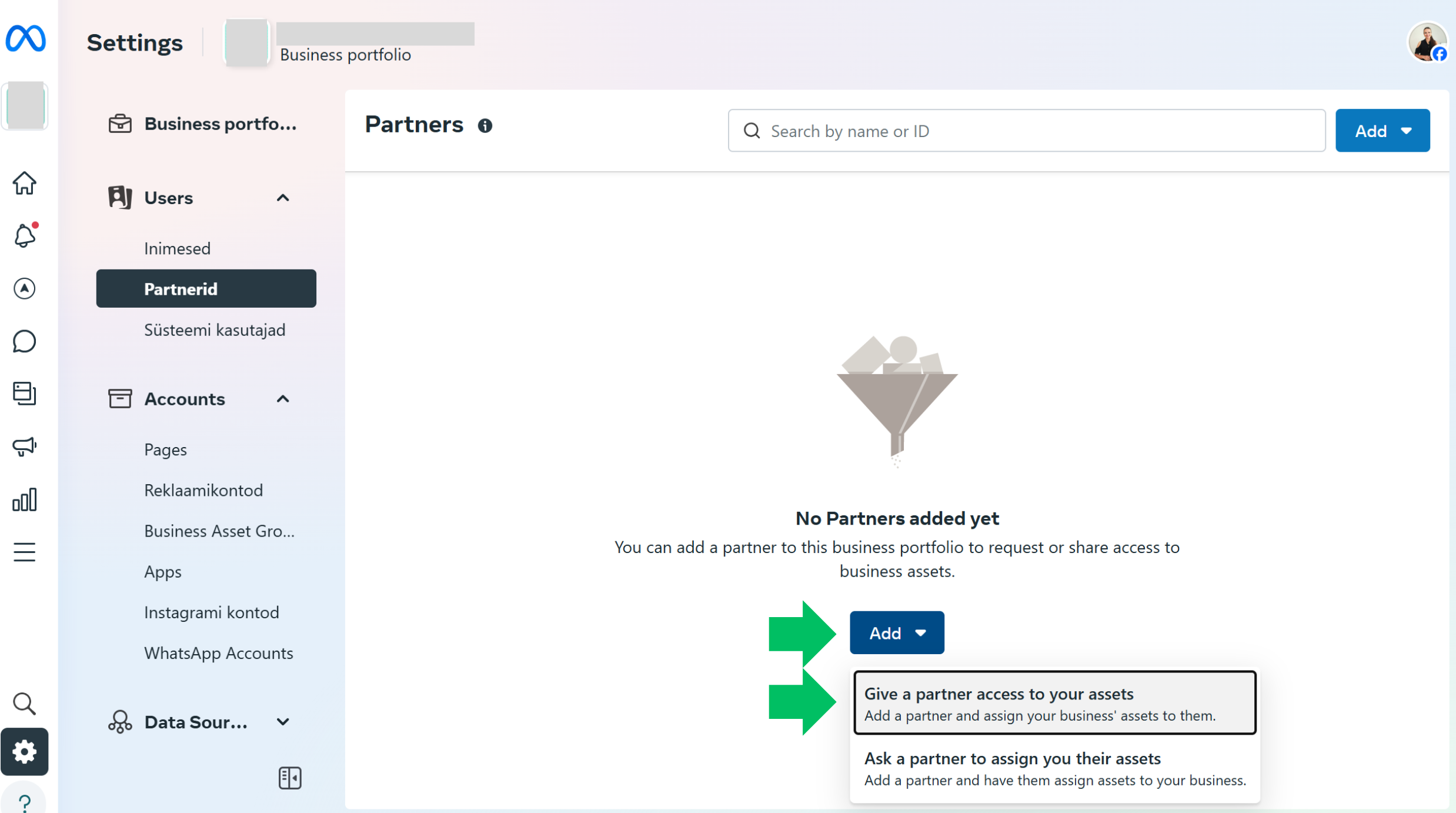 - Kui koostöö on pikemaajaline ja hõlmab mitut inimest või ressurssi, lisa teine Business Manager partneriks.