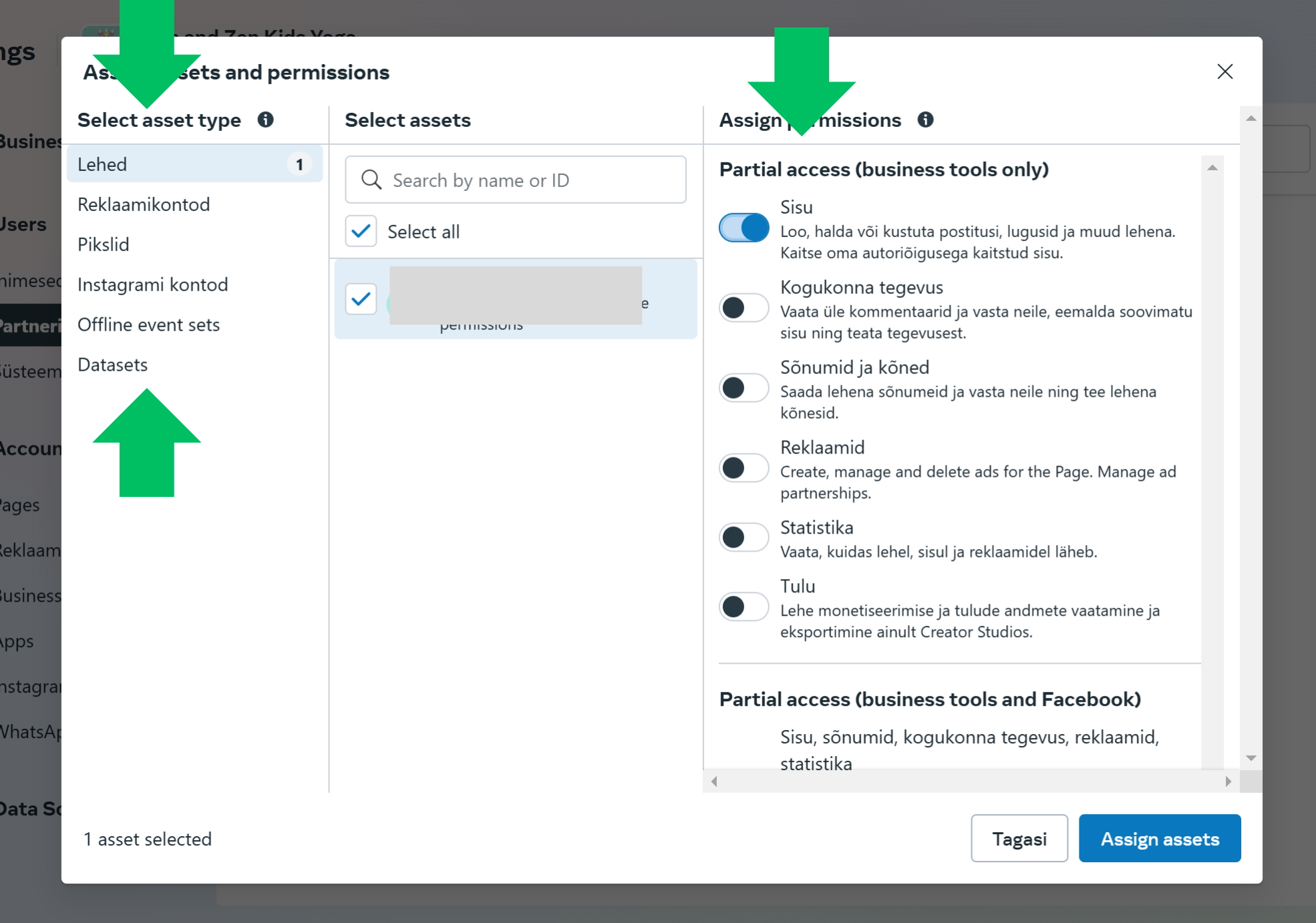 Käi hoolega läbi kõik “Asset type” võimalused, et määrata, millele partner ligipääsu saab.
